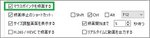 マウスポインタを録画する設定を行うことができます。普段の動画を録画する時は、マウスポインタが録画されないようにオフにしておきます。マウスポインタを録画したい時には、オンにすると録画することができます。操作説明など作成するときに便利に使用できます。